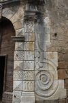 Portail Baroque de 1641 (La date est indiquée au-dessus de l’œil de bœuf) percé dans le chevet circulaire. Une niche sous un fronton coupé porte une vierge en marbre pq.XVII. Les armoiries présentant une fleur de lys ont été martelées à la révolution.