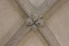 Nef du chœur au portail. On aperçoit un cul-de-four, vestige de l’ancien emplacement du chœur. Les arcs retombent sur des colonnes engagées. Tandis que le vitrail intérieur du portail montre une colombe, l’œil de bœuf présente une croix de malte.
