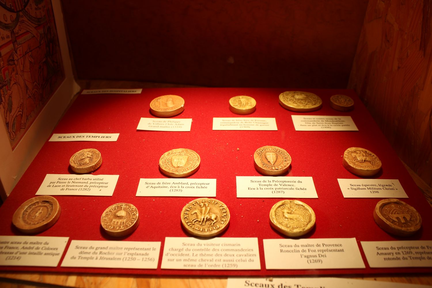 Moulages de sceaux templiers et hospitaliers. L’iconographie fait fréquemment référence à la Terre Sainte comme ici, le dôme du rocher et l’Agia Anastasis.