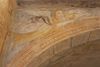 Partie centrale de la clôture du chœur : chien et mouton puis colombe et chien autour d’une croix latine.