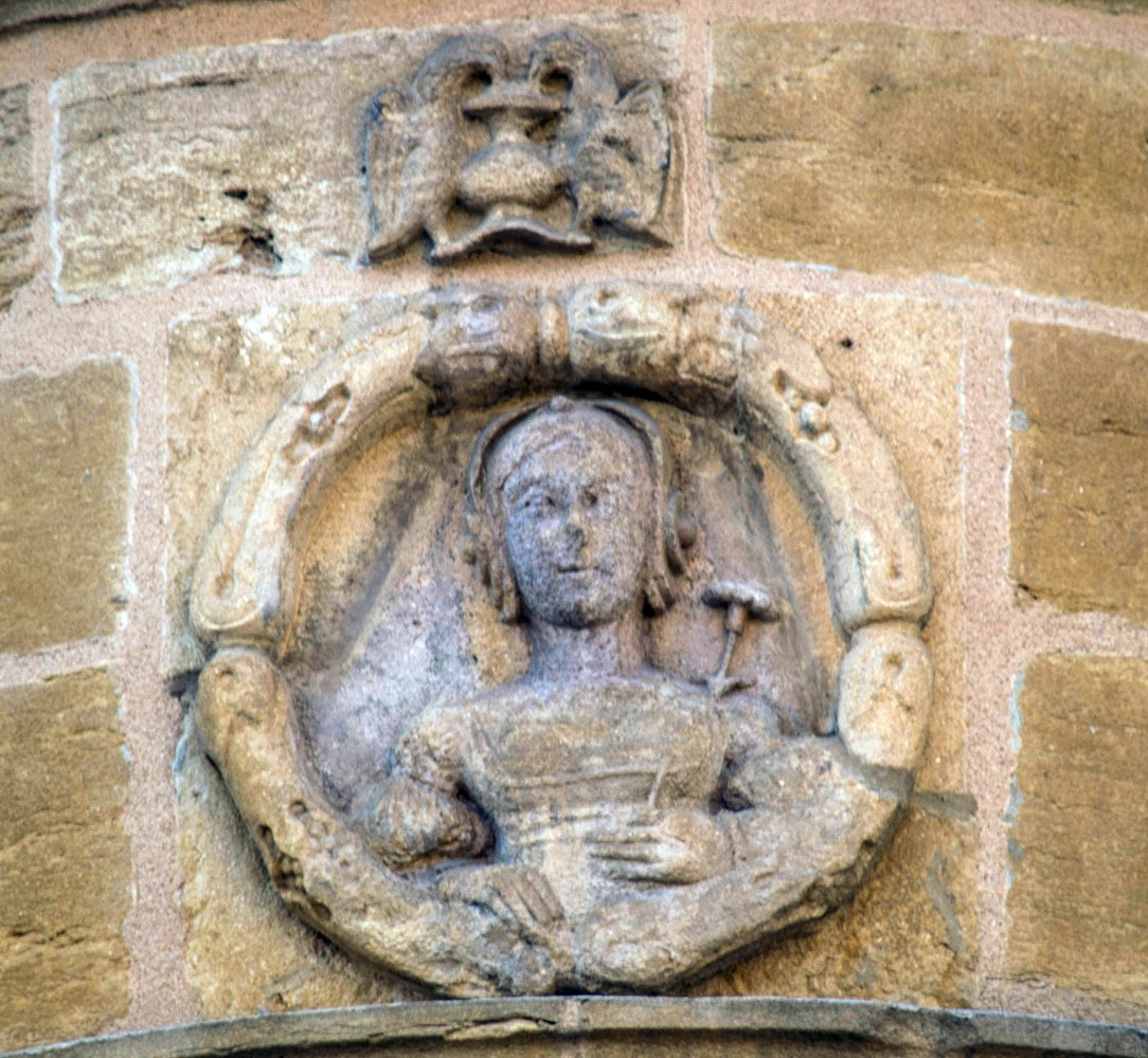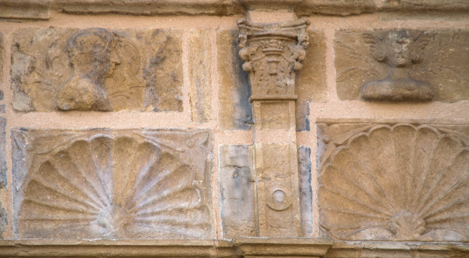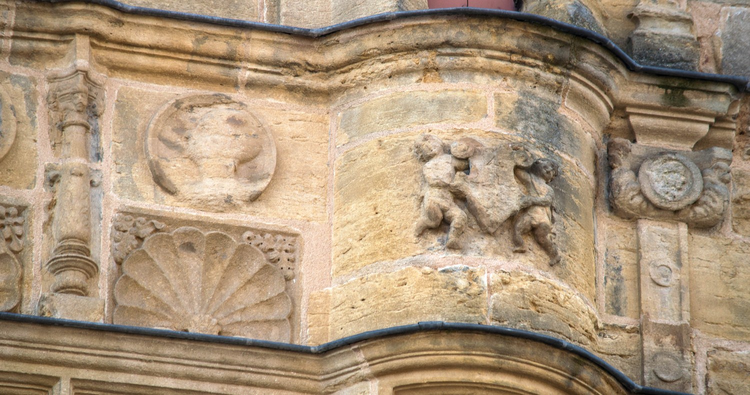 . Les poupons au dessus de la porte tiennent des rubans qui indiquent : 1523, fut comace ceste maiso.