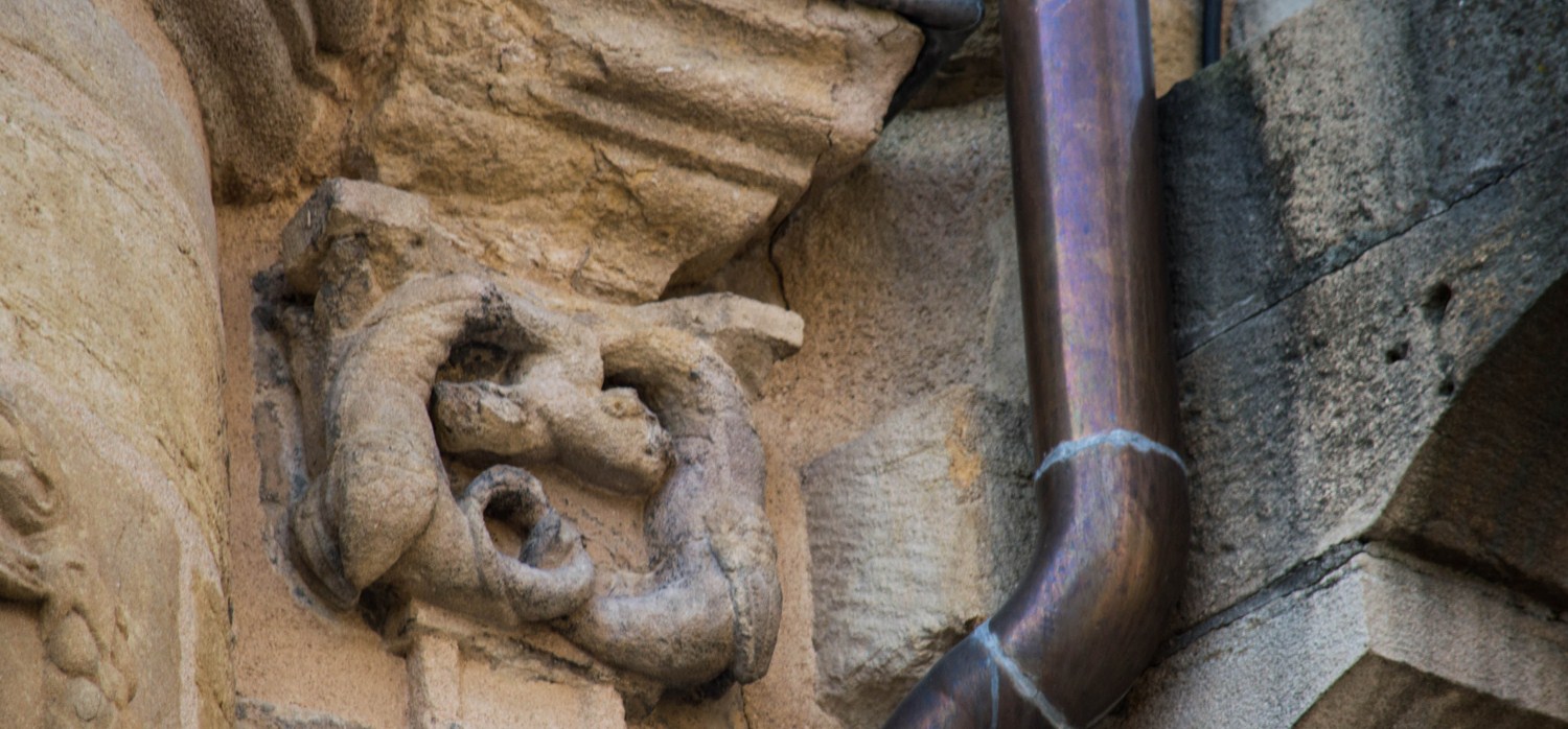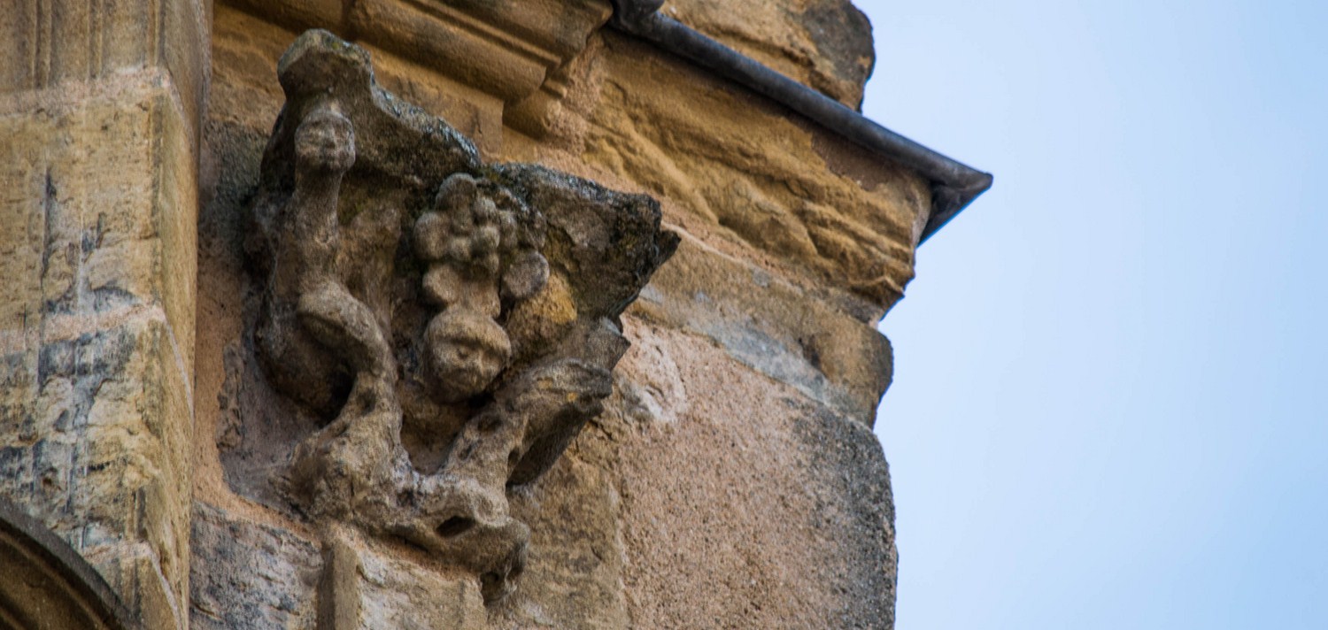 Vue sur un médaillon avec à coté, un être tricéphale rappelant d’anciennes représentations de la Mandragore.