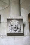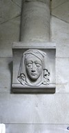 Parties gauche et droite de la crypte vue de l’entrée avec leurs culots sculptés représentant une pleureuse.