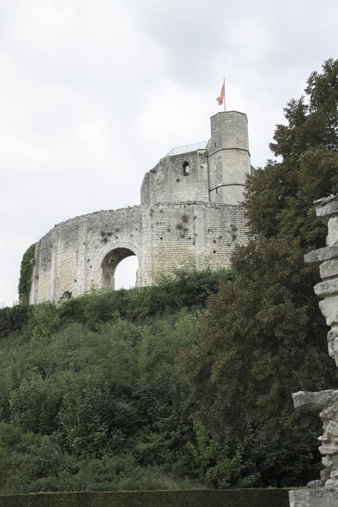 ► Située à un point stratégique important du Vexin, on édifice d’abord sur le site une motte cadastrale surmonté d’une tour en 1097 qui sera agrandie et fortifiée un an plus tard par un donjon en bois. C’est en 1123 qu’on le réédifie en pierre. En 1170 – 1180, on agrandit le château de deux étages et on lui donne sa forme octogonale ainsi que ses fossés que l’on étend et on ajoute une enceinte que l’on flanque de tours. Subtilisant la place forte à Richard Cœur de Lion alors que ce dernier à été fait prisonnier par Léopold V d’Autriche, Philippe II Auguste remanie la forteresse en 1193 en y ajoutant sa pièce maîtresse : la Tour du prisonnier. L’édifice est repris par les anglais pendant la Guerre de Cent ans, en 1419 – 1449 avant d’en être chassés de nouveau. En 1605, le site n’étant plus d’une première importance au plan militaire, on décide de son démantèlement et il devient bien communal à la Révolution puis est en partie restauré en 1851.