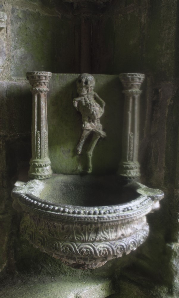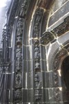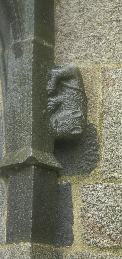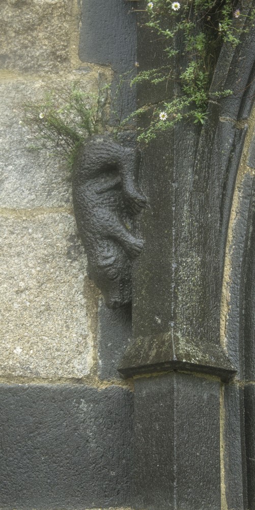 ► Le chevet est en parti décoré d’une frise sculptée de diverse figures à la symbolique païenne voir alchimique. De nombreuse autres figures sculptées et gargouilles parsèment l’édifice. Le porche quant à lui est ornée de curieuses petites créatures.