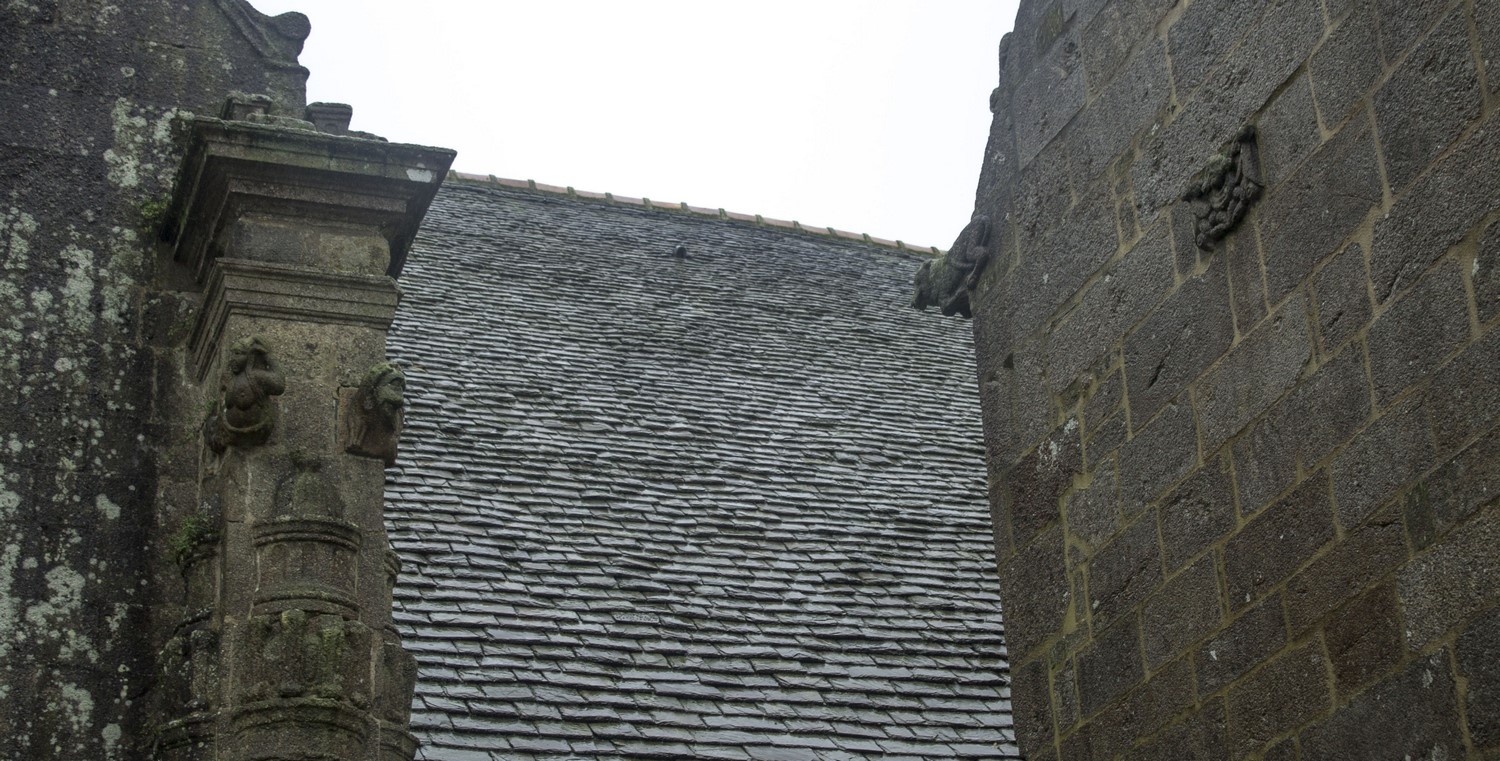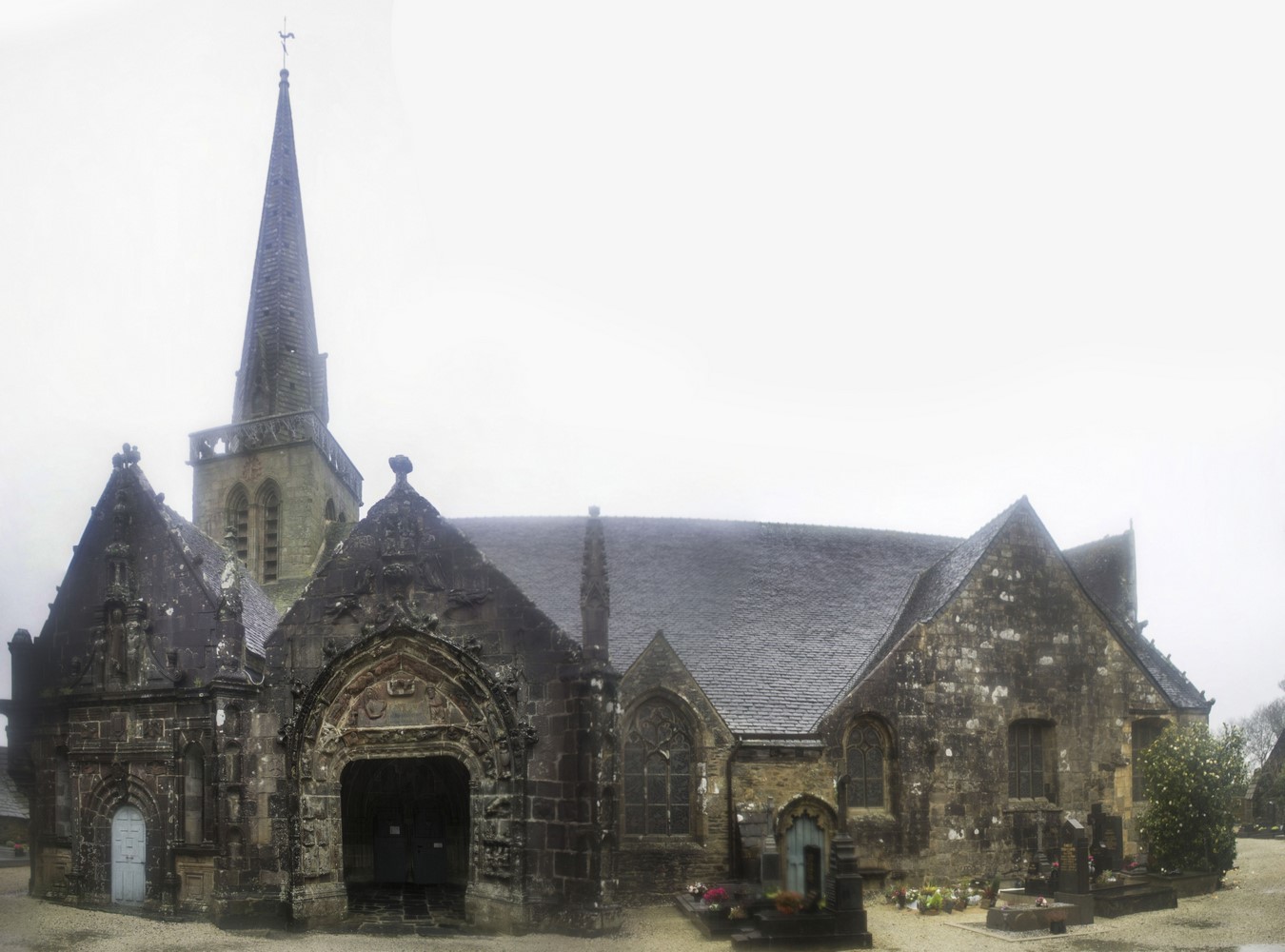 Façade sud de Saint-Salomon avec son porche richement sculpté.