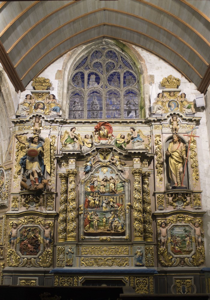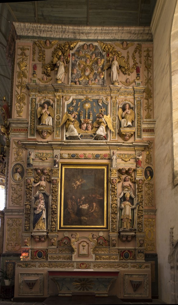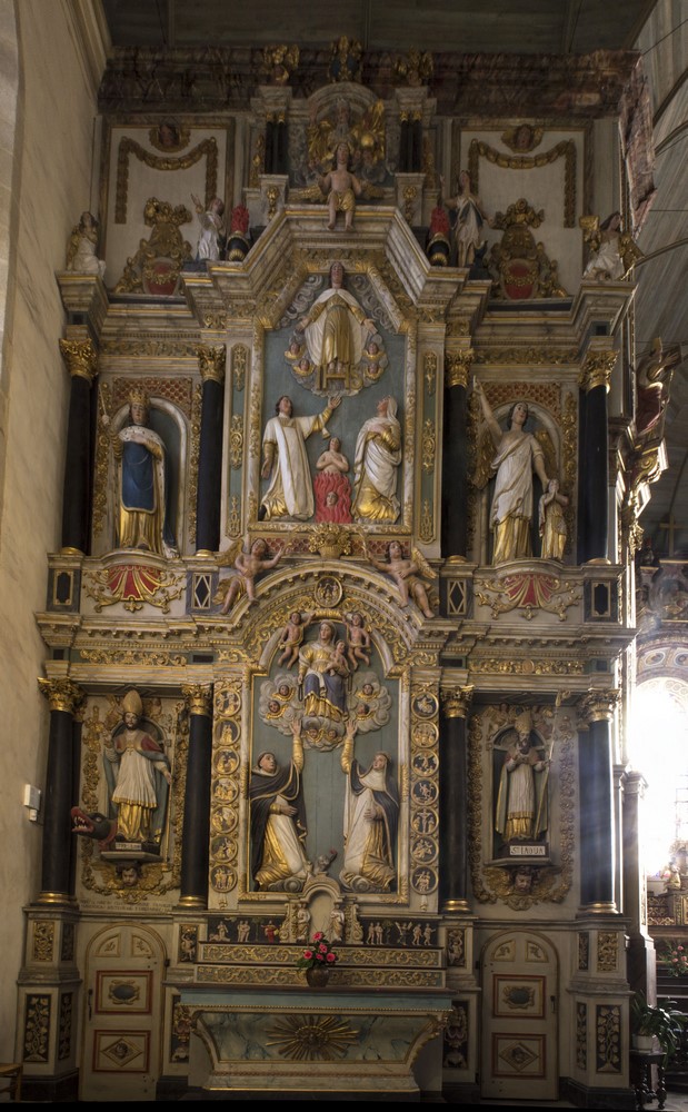 Le retable du Rosaire au bras sud du transept, œuvre de Jean Berthouloux.