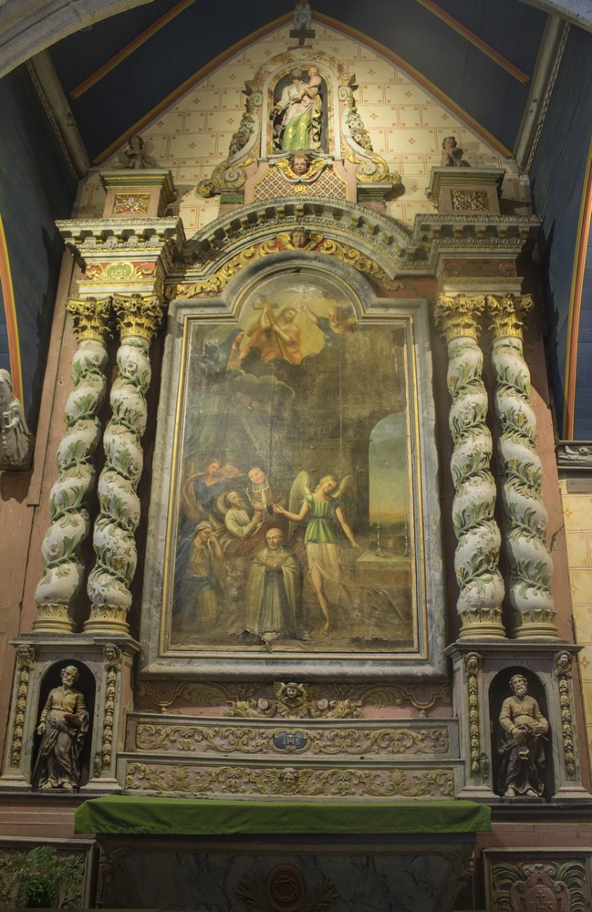 Le retable des agonisants au bras nord du transept, le tableau représente la morts d’un fidèle aux coté de Michel le Nobletz.