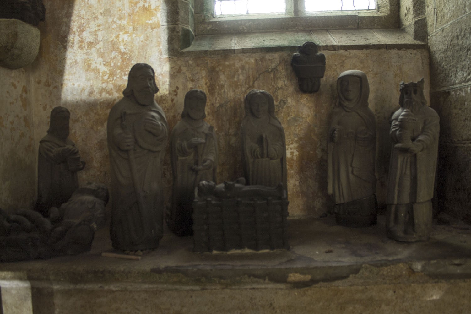 Petite scène d’adoration des mages en pierre de Kersanton.