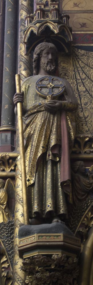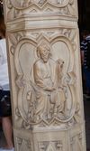 Statue d’apôtre adossé à une pile. Jacques le Mineur ?