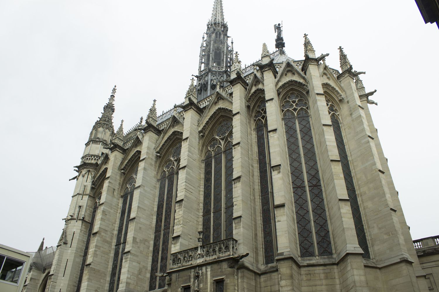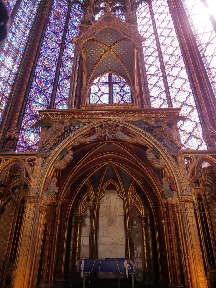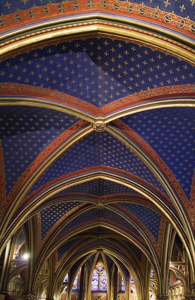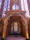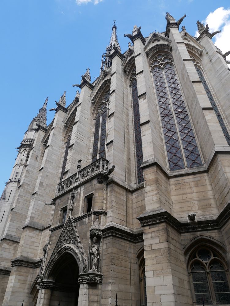 ► La chapelle communiquait directement avec les appartements royaux. Son architecte demeure inconnu bien que l’on propose en général Pierre de Montreuil. Première des Sainte-chapelle, elle servit de modèles pour les chapelles palatines françaises ultérieure, mais fut elle même inspirée des églises palatines carolingiennes. Elle est constituée de deux étages : la partie haute conservait les reliques, tandis que la chapelle basse qui conservait plusieurs sépultures, servait au culte.
