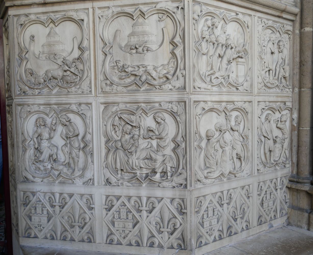 Les médaillons du soubassement gauche présente des scènes de la Genèse.