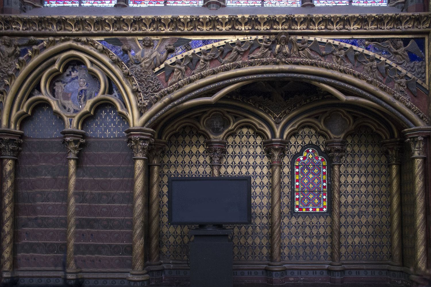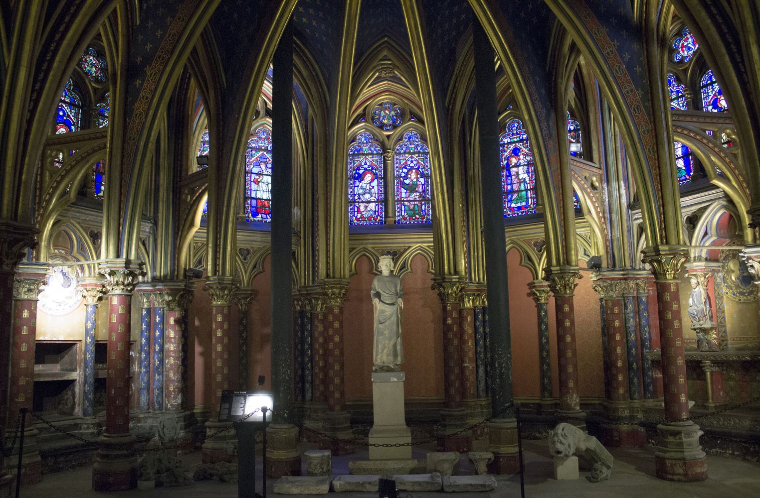 Chœur de la chapelle basse. La statue de Saint-Louis a été exécutée l’année de sa canonisation, en 1297.