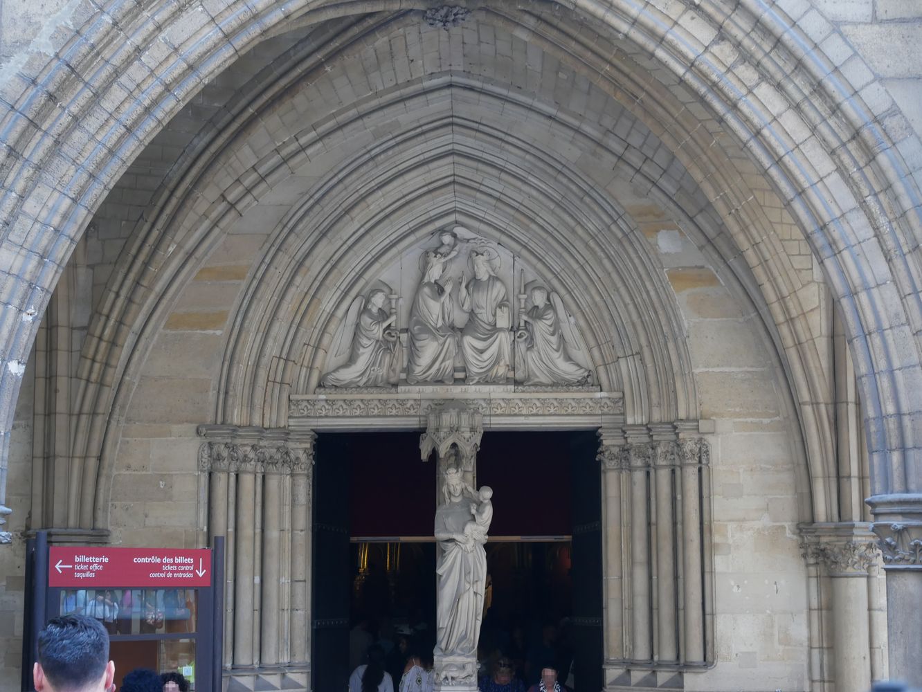 Le portail de la chapelle basse propose un Couronnement de la Vierge. Au trumeau, une Vierge à l’enfant.