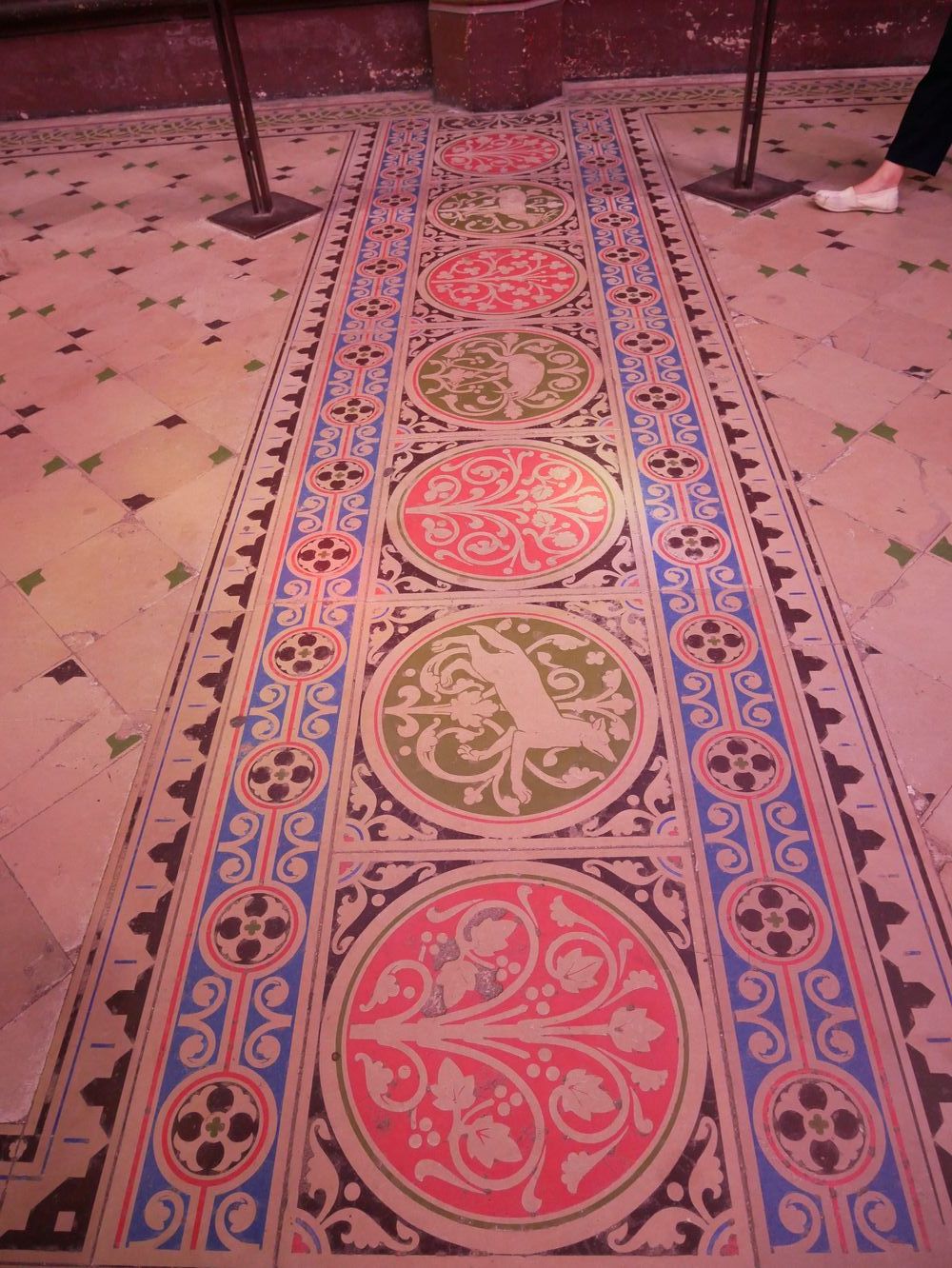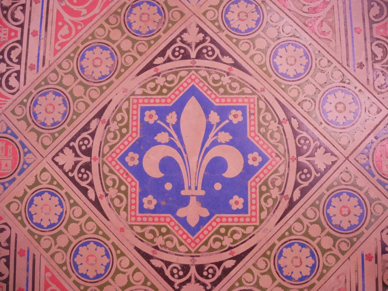 Sur ces portions de pavement on retrouve les deux symboles principaux de l’édifice : 1. la fleur de Lys et 2. le château Castillan.