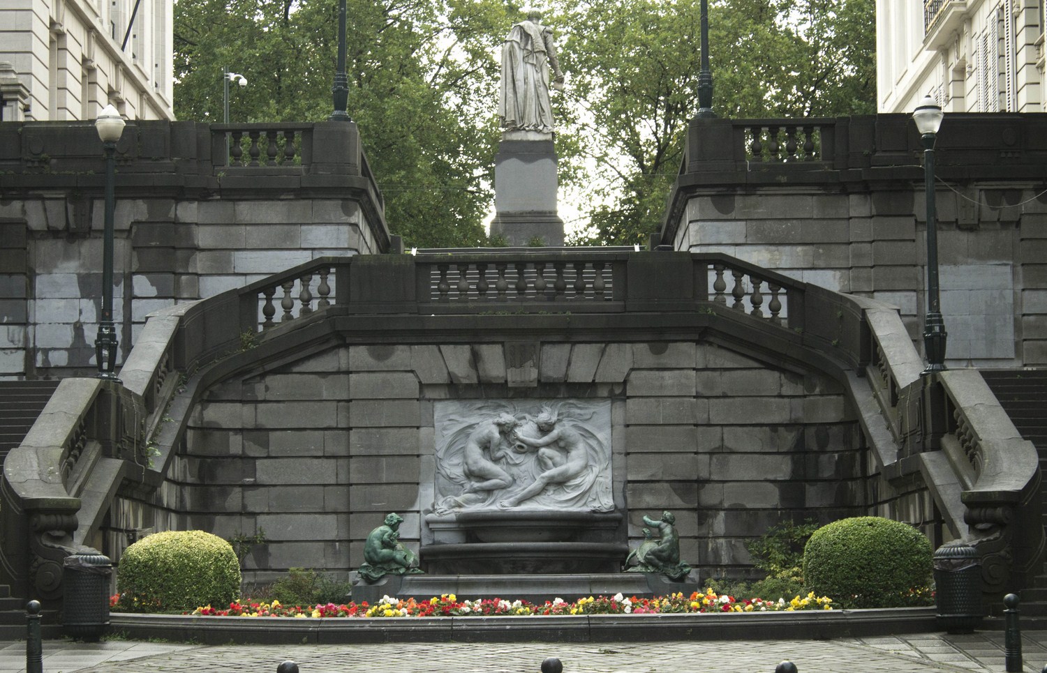 Le Palais royal du d.XIX faisant face au Parc de Bruxelles de 1775 – 1783. Ce dernier recèle de nombreuses sculptures tirées de la mythologie gréco-romaine et dont le plan peut évoquer un symbolisme maçonnique.