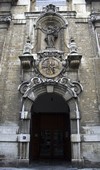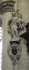 Façade occidentale avec une Vierge à l’enfant nichée au dessus de l’Armorial du Saint-Esprit de Charles de Lorraine.