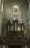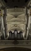 Nef depuis le portail occidental et depuis le chœur avec l’orgue de tribune de 1869.