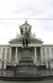 Place Royale réalisée en 1775 – 1782. On y voit la Statue de Godefroid de Bouillon de 1848 ainsi que l’Église Saint-Jacques-sur-Coudenberg de 1776 – 1787 ornée de son fronton : La Vierge consolant les Affligés.