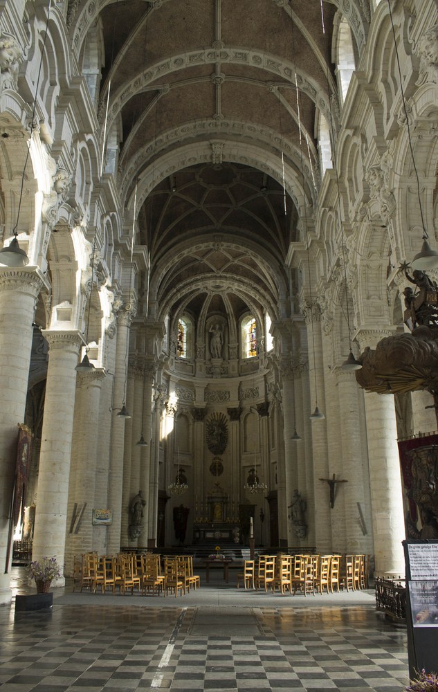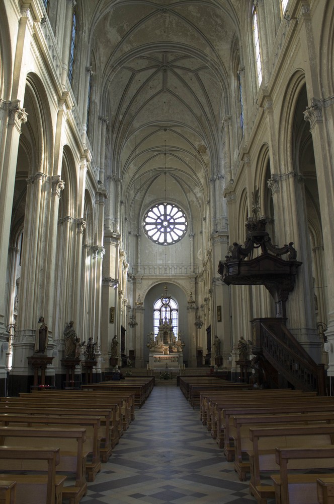 ► La nef est reconstruite flamboyante en 1431 – 1483 suite à un incendie en 1405 qui embrasa tout le quartier des Marolles. Saccagé par les calvinistes en 1574 qui détruisent le mobilier, elle est aussi touchée lors de bombardement français de 1695. On restaure l’édifice de 1699 à 1708 en ajoutant une flèche baroque à la tour-clocher alors endommagée. Ayant subit de nombreuses réparations mais aussi remaniements au XIX, elle doit enfin subir deux séries de restaurations au XX avec notamment l’ajout d’arc-boutants au coté nord puis sud en 1938.