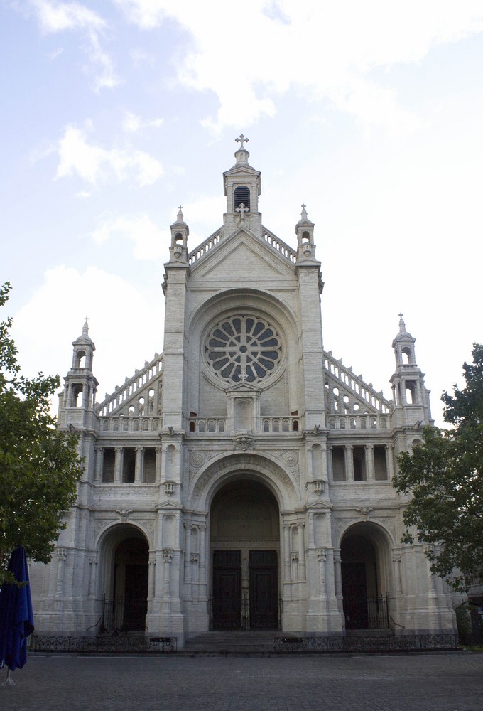 ► Cette église baroque italo-flamande remplace un précédent édifice gothique construit f.XIII qui appartenait au Grand Béguinage de Bruxelles, Notre-Dame de la Vigne, fondé en 1247 et dont la dernière de ses 1084 maisons disparue en 1856. Gravement endommagée par les calvinistes en 1579, elle est détruite en 1584. Au même endroit on construit alors le nouvel édifice de 1657 à 1676 qui s’inscrit dans le programme architectural de la contre-réforme même si de nombreux éléments gothiques subsistent dans son plan. On ajoute deux portails latéraux en 1770 et l’église est ensuite restaurée en 1845 – 1881.