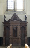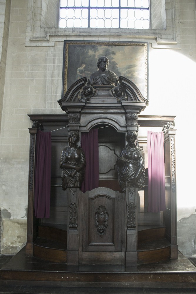 Série de six confessionnaux XVIII logés dans les collatéraux et orné de sculptures allégoriques de pénitentes figurant le Sacrement de pénitence et de réconciliation.