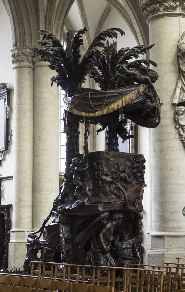 Chaire de vérité baroque de 1721 représentant l’Ange nourrissant Élie.