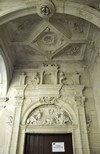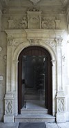 ► L’architecture des façades intérieures fidèle à l’esprit de la Renaissance s’exprime dans une composition italienne et un style français. Elle révèle une thématique à la fois biblique, mythologique et alchimique où l’on retrouve volontiers dans les bas-reliefs le symbolisme "hiéroglyphique" du Songe de Poliphile. En effet, le trio alchimique de Flers composé de Nicolas de Grosparmy, Pierre de Vitecoq et de Nicolas Valois lui-même à laissé derrière lui un certain nombre de manuscrits dont la copie le plus connue est nommé Les Cinq livres ou la clef du secret des secrets. Le seigneur d’Escoville nous aura donc laissé un autre témoignage, architectural cette fois, de son intérêt pour l’alchimie.