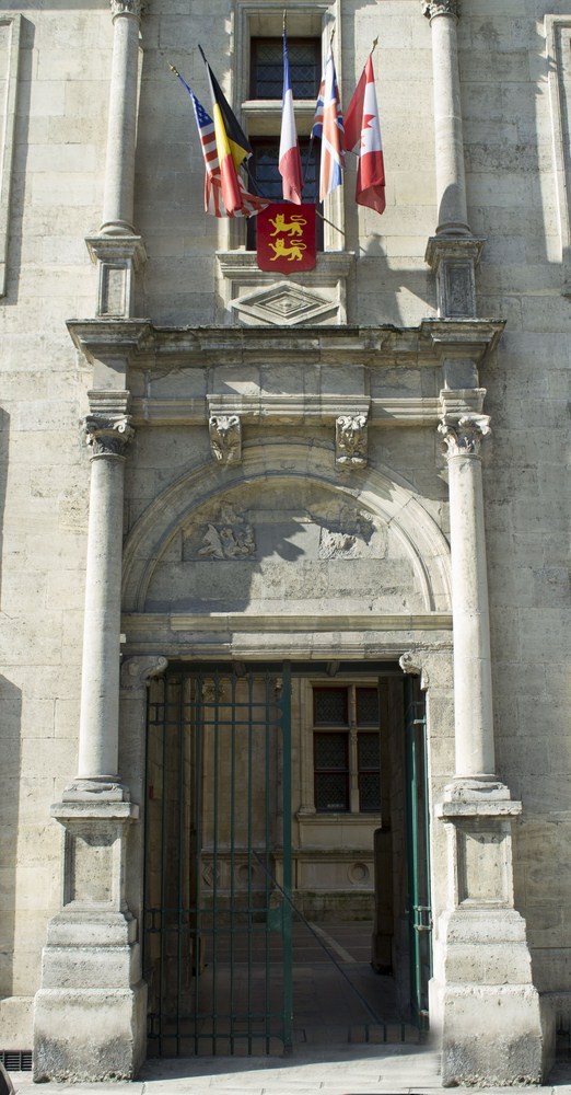 ► Abritant de nos jours l’Office du tourisme de Caen, l’Hôtel du Grand Cheval comme on le nomme jusqu’au milieu du XIX est le monument renaissance le plus important de Caen. Il est construit par le notable Nicolas Le Valois d’Escoville qui rachète et fait démolir plusieurs maison afin de construire son hôtel privé. Si on se réfère aux dates présentes sur les meneaux, c’est en 1533 que l’on finit le pavillon de face. Son aile est quant à elle terminée en 1535 et c’est enfin en 1537 qu’on érige le grand corps de logis le long de la Place Saint-Pierre. L’alchimiste፧ n’aura guère l’occasion de jouir de son hôtel puisqu’il décède en 1541. Siège de l’Académie des sciences, arts et belles-lettres de Caen depuis 1753, le bâtiment est régulièrement loué à la ville qui y installe progressivement ses services et son administration au fil du temps. Endommagé lors de la seconde guerre mondiale, il est restauré en 1960.