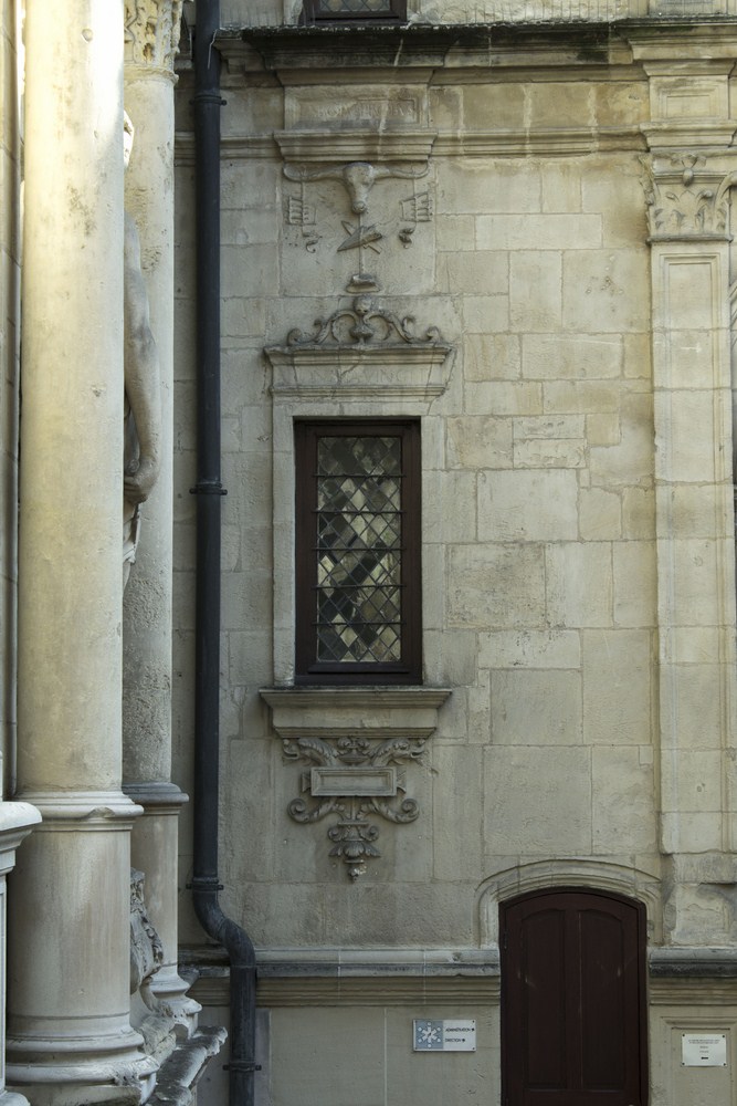 Façade qui présentait jadis au tympan, le Cavalier Fidèle et Véritable, ce qui avait valu à l’édifice son nom fut détruit en 1793.