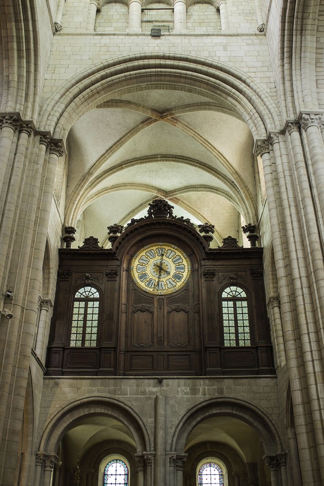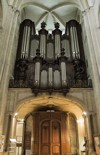 Nef vue du chœur avec l’orgue Cavaillé-Coll de tribune datant de 1882 et reposant sur deux atlantes.