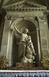 Sculptures de saint Christophe et d’un ange entouré de reliques.