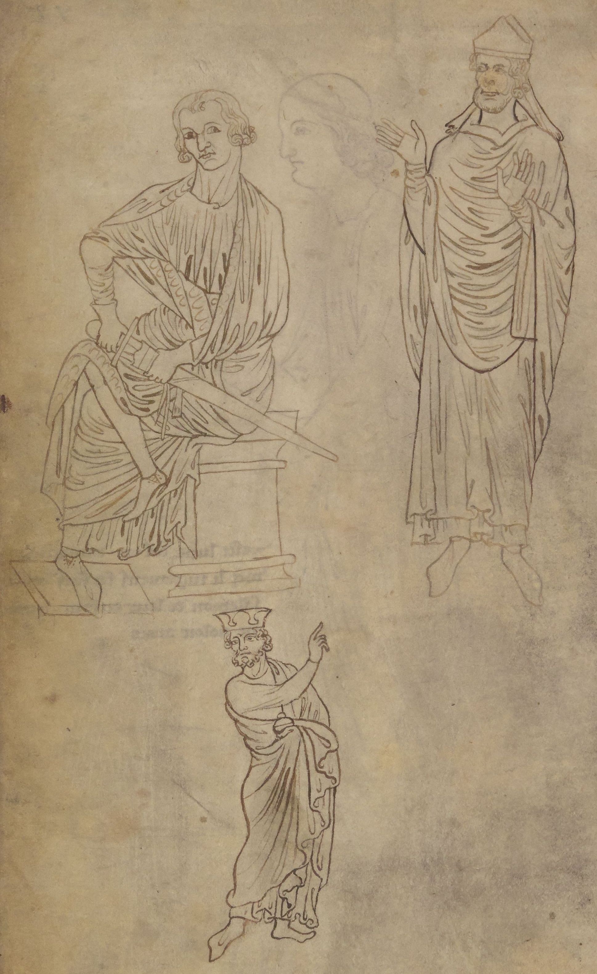 Note : Personnage assis, tirant le glaive. — Evêque. — Roi.