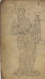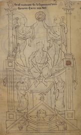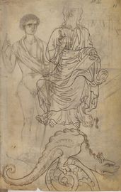 Note : Figures d’après l’antique. — Roi assis sur son trône sous un baldaquin፧.