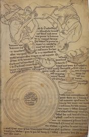 Note : Plan du chevet de l’église Notre-Dame de Vaucelles, près Cambrai. — Figure du Christ tombant à terre. Istud est presbiterium Beate Marie Vacellensis ecclesie, ordinis Cister-ciensis. Ce est un imaje Deiu, si cume il est cheus.