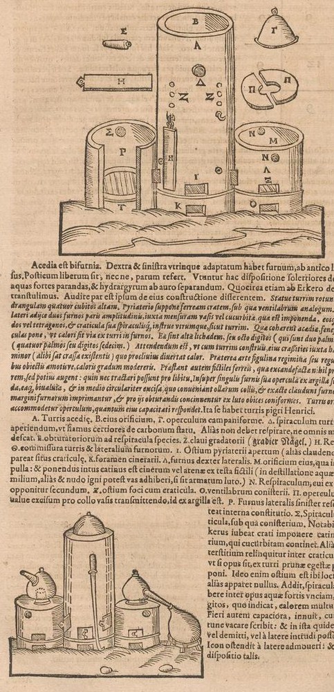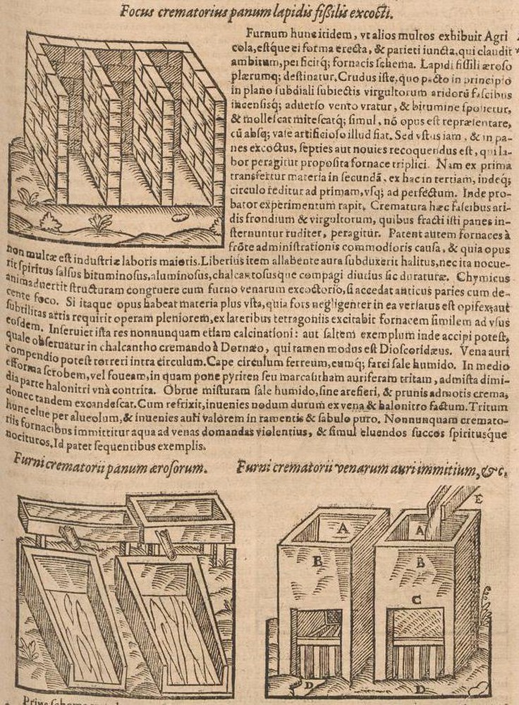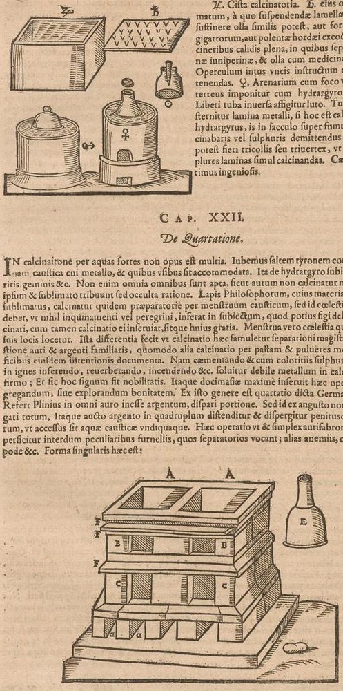 ► L’imposant ouvrage du zélé défenseur du paracelsisme qui s’étend sur plus de 800 pages n’a jamais été traduit en français. On le considère comme l’un des premiers ouvrages écrits de chimie. Il est séparé en deux tomes lors de la première édition puis réuni en un lors du second. Les figures ne sont présentes que dans la partie correspondant au second tome dans la première édition. Cette seconde partie se nomme Commentaire métallique {Commentationum Metallicarum}. Les gravures les plus connues qui sont les dernières de l’ouvrage tiré d’un chapitre intitulé : De la Pierre philosophale.