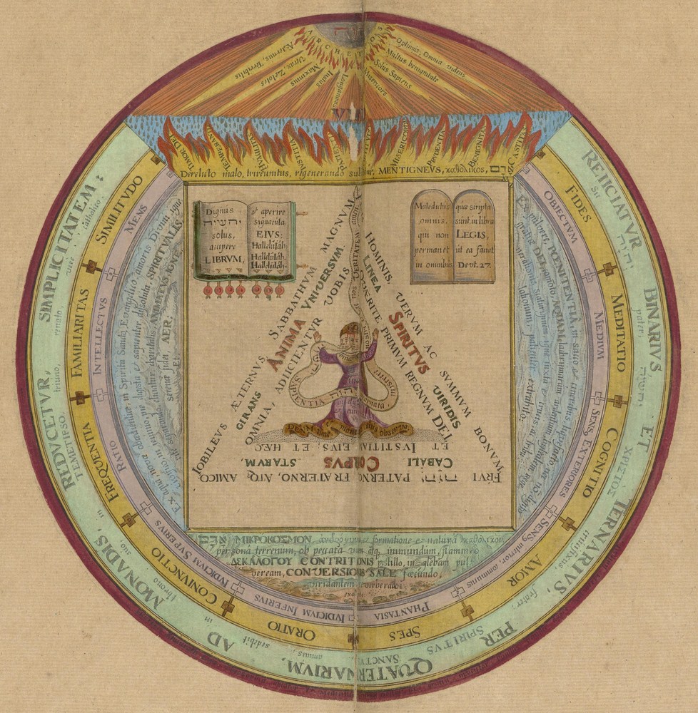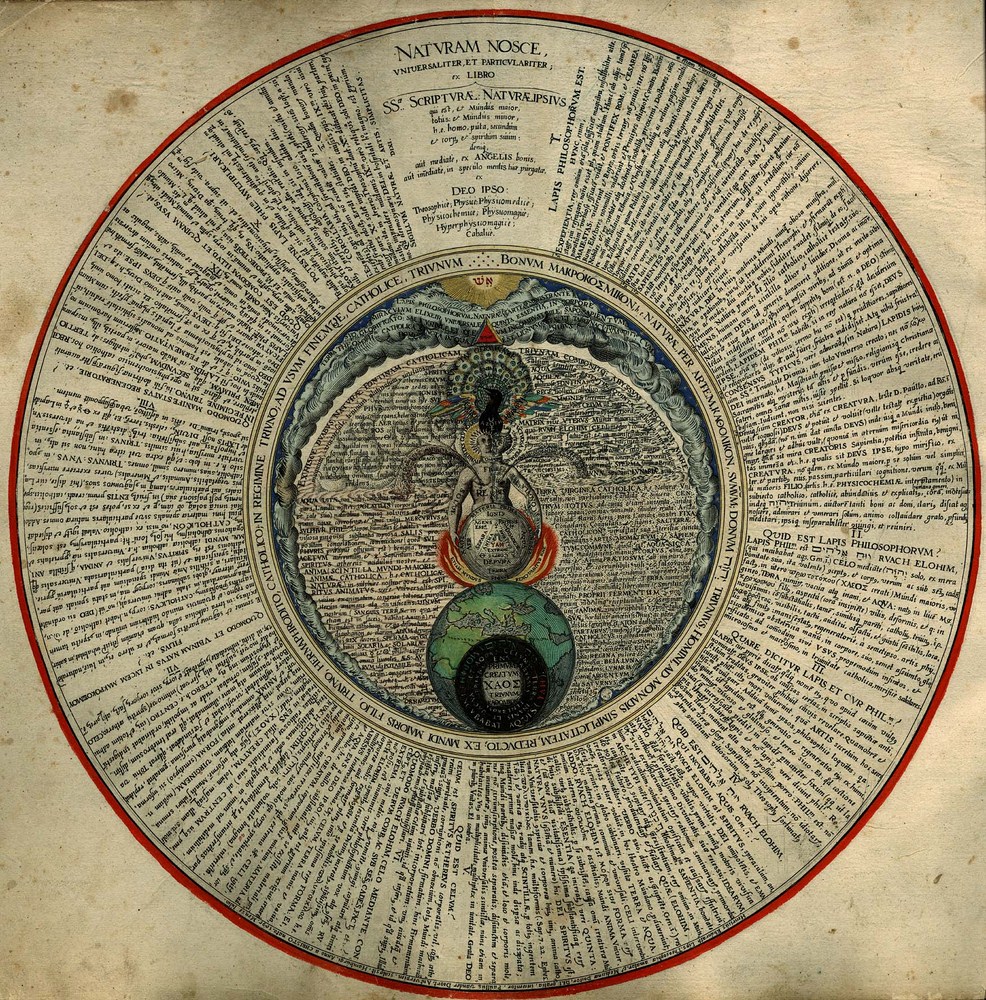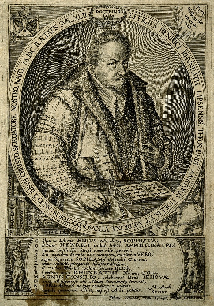 ☩ Illustration : én. de l’Amphithéâtre de la Sagesse Éternelle, 1602. | bs. Bibliothèque Wellcome (Londres, Royaume-Uni). Cherchez le numéro V0003216 dans le serveur d’images.