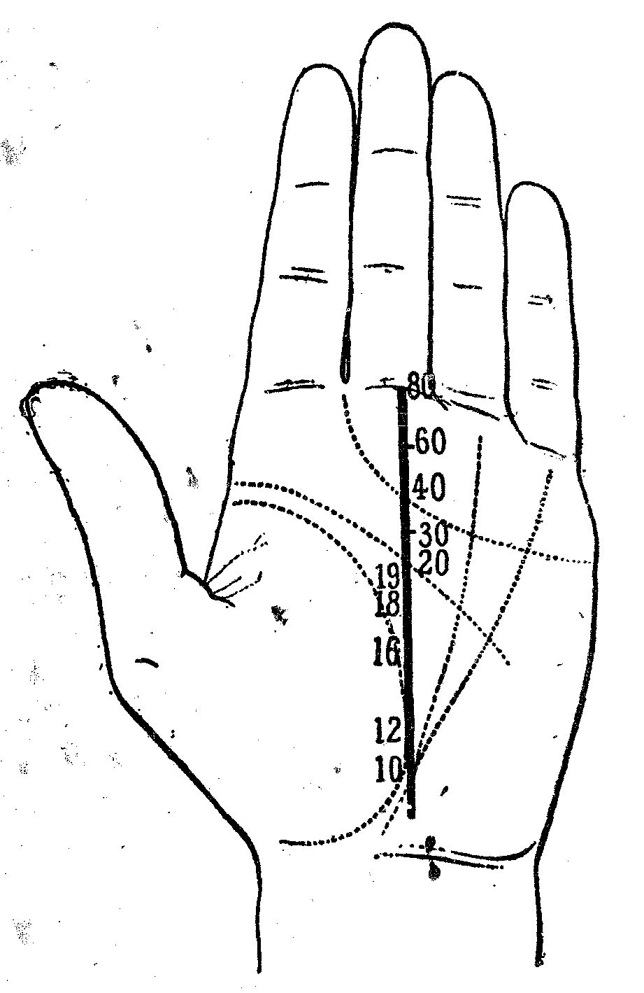 Considérez votre main gauche et voyez bien le médius, ce grand doigt qui dépasse tous les autres. Il représente la Fatalité, et il se continue dans la main par une ligne verticale qui se nomme la Saturnienne ou ligne de Fatalité. Voilà l’image de la route que l’homme doit parcourir durant son existence.