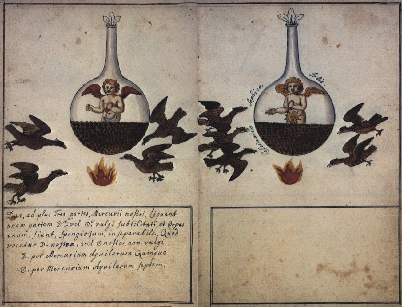 et écrit de la main d’un rabbin mais contenant uniquement des propos alchimiques. Pour un autre (et le premier) texte mêlant qabale et alchimie፧, 𝕍 surtout l’Aesch Mezareph.