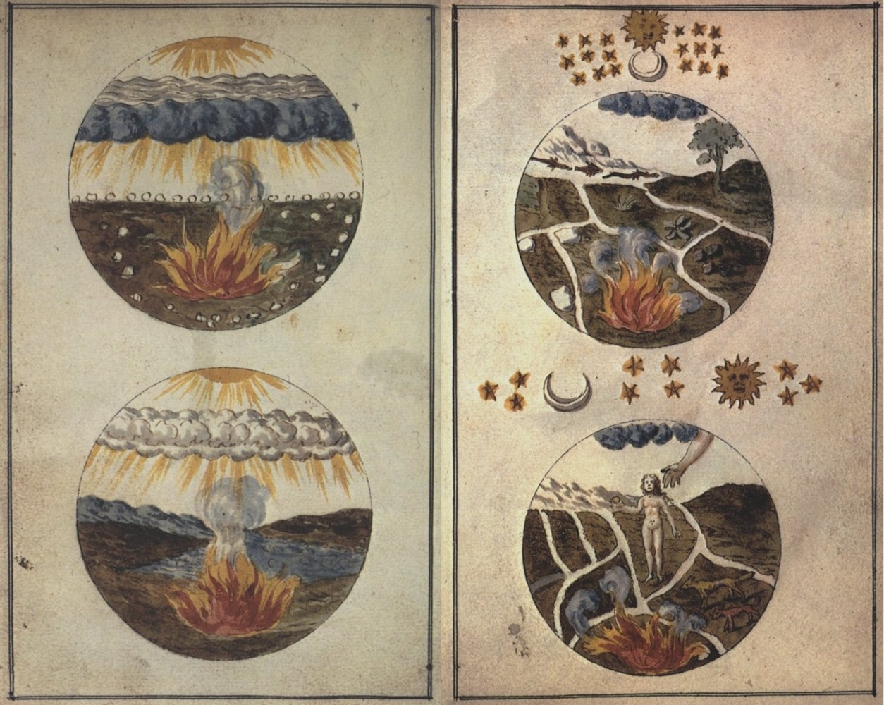 ■ Si on se réfère à l’extrait graphique qu’il en donne, il ne s’agit pas manifestement du manuscrit du British Museum signalé par Jung dans Psychologie et Alchimie, le trait du dessin étant différent. Il possède néanmoins une traduction en anglais. La source pourrait donc plutôt être un hypothétique manuscrit français signalé par Adam McLean mais cette information reste à vérifier dans la mesure où on n’en trouve nulle trace dans le catalogue général de la Bnf.