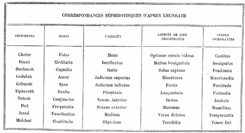 ■ Nous n’avons pas repris les schémas déjà antérieurement présents dans le Traité élémentaire de sciences occultes du même auteur et Essais de sciences maudites de Stanislas de Guaita, referez vous à ces derniers pour les consulter. Nous avons en revanche gardé l’arbre séphirotique 🗎⮵ et des tableaux de Kircher présents dans l’Œdipe égyptien {Œdipus Aegyptiacus} attendu qu’ils sont ici traduits en français, mais y avons exclu la gravure 🗎⮵ que Papus à récupéré de l’ouvrage pour la placer en frontispice puisqu’elle n’apporte rien sinon une qualité moindre.