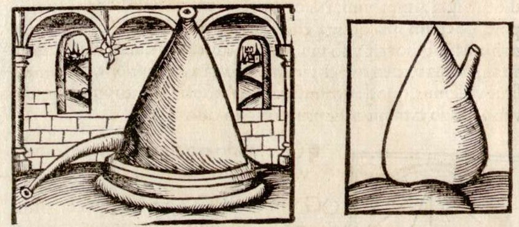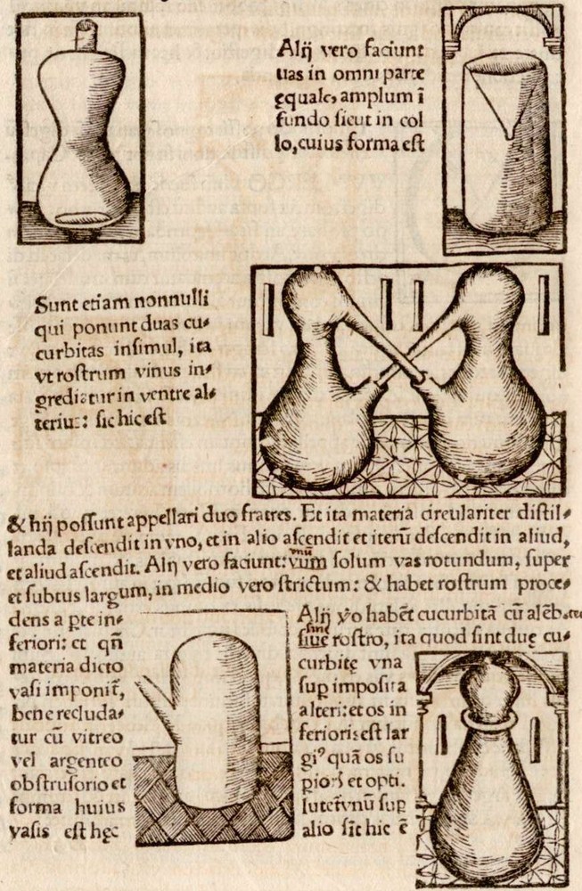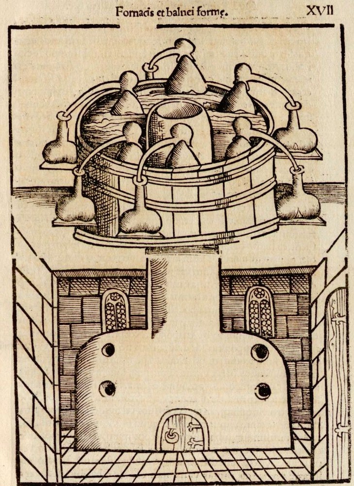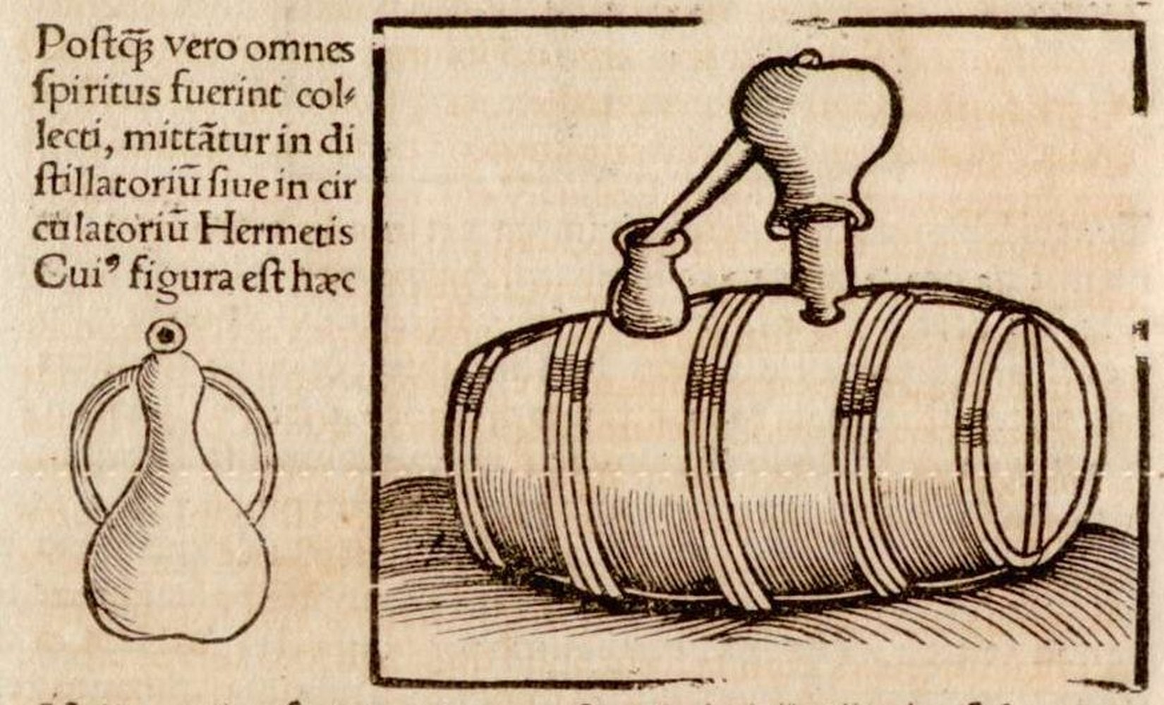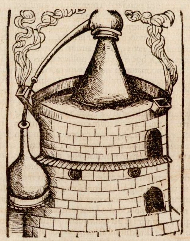 1. Cet ouvrage, encore plus rare dans la traduction française que dans l’édition originale latine de 1525, orné de nombreuses figures gravées sur bois représentant des fourneaux philosophiques, des cornues, des athanors et d’autres ustensiles employés par les alchimistes, constitue un traité complet de l’art distillatoire. Parmi les différentes espèces de distillations citées par l’auteur, l’on note la « distillation circulatoire » fort en usage au XVe siècle, mais abandonnée aujourd’hui. Ulstade loue les propriétés de l’Or potable et celles de l’eau-de-vie. Il nous donne, entre autres, la recette d’une liqueur, « Eau-de-vie de l’Empereur Frédéric troisiesme », fort goûtée des gourmets du Moyen Age.
