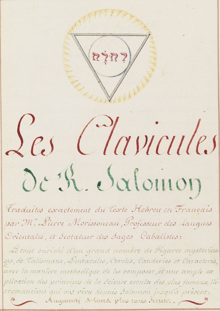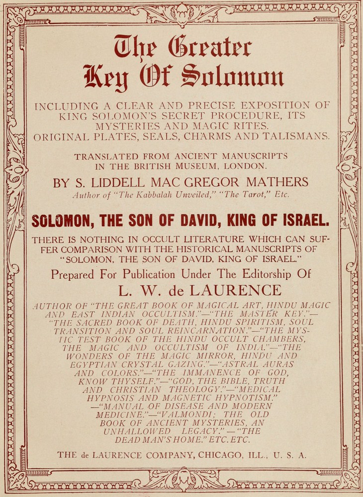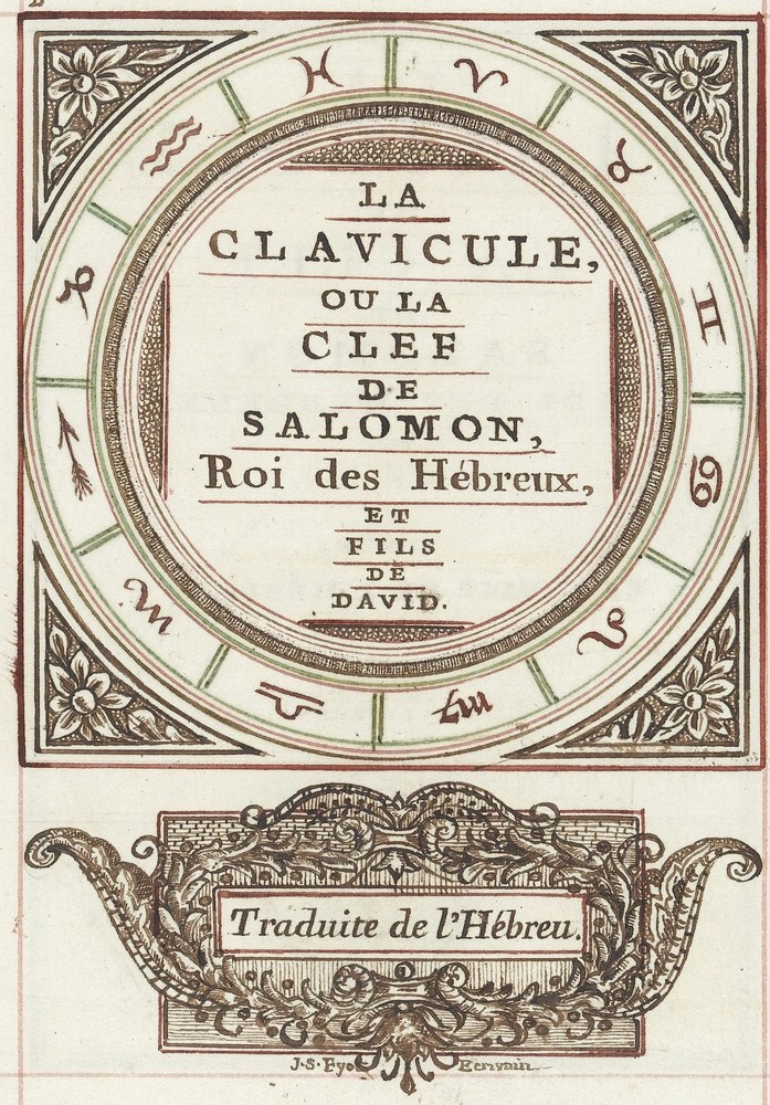 ► Mathers avait publié sa propre version compilée de plusieurs mss. en 1888 sous le titre The Key Of Solomon The King. Éliphas Lévi à quant à lui écrit la sienne sous le nom Clefs Majeurs et Clavicules de Salomon, ms. qu’il donna au Baron de Spedalieri. Il fut publié selon la volonté de l’auteur, après sa mort en 1895 comme bon nombre de ses œuvres.