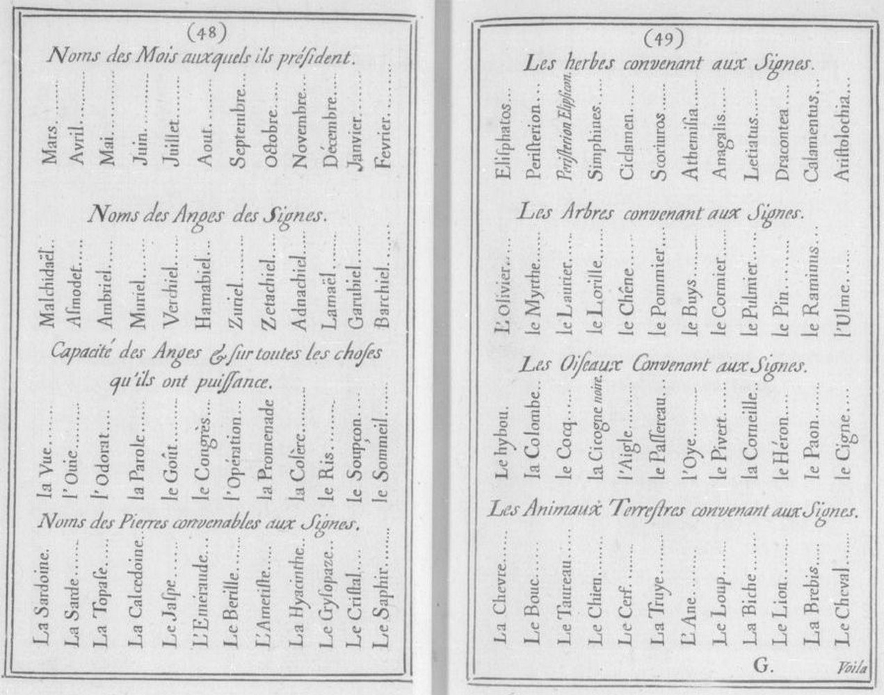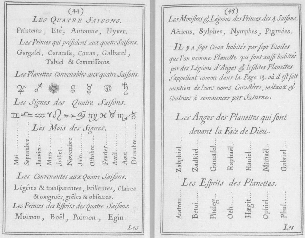 🕮 Yves-Plessis, ref.1074 Il existait au milieu du XVIII° siècle trois ouvrages imprimés portant ce titre, remontant probablement au XVI° ou XVII° siècle, et déjà fort rare. L’un de ces ouvrages dont il est question dans les "Mémoires d’histoire, de critique et de littérature" de l’abbé d’Artigny, Tome 1 (pp. 36-40), était divisé en XII paragraphes, dont le neuvième était intitulé : "Exorcisme des esprits de l’air."