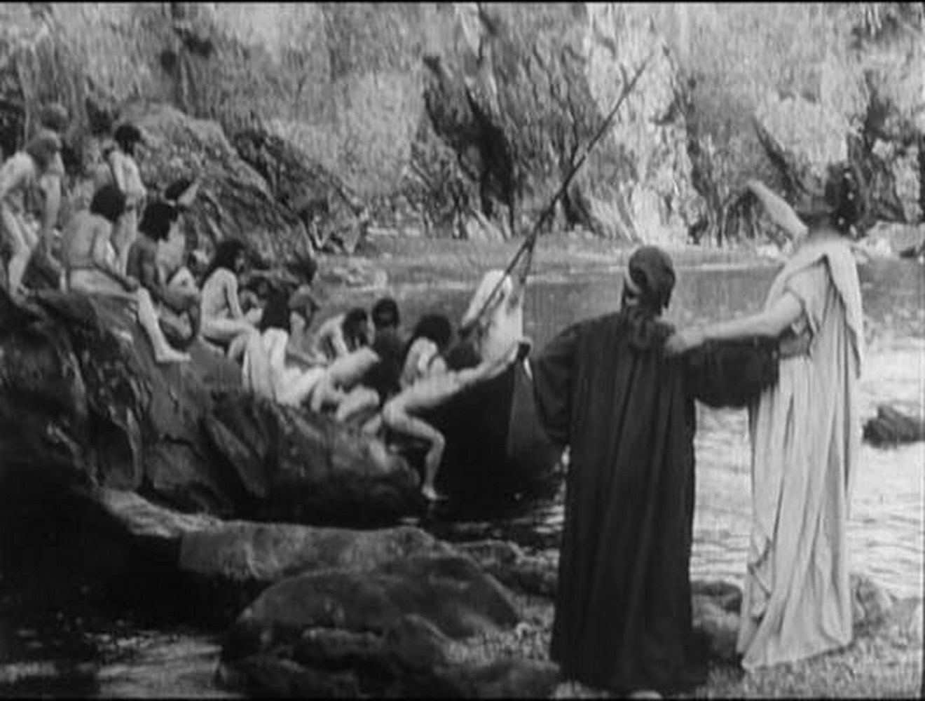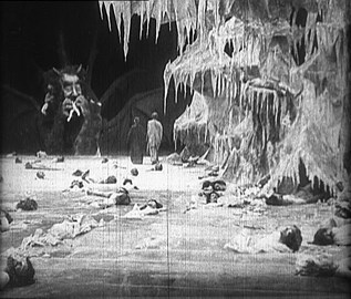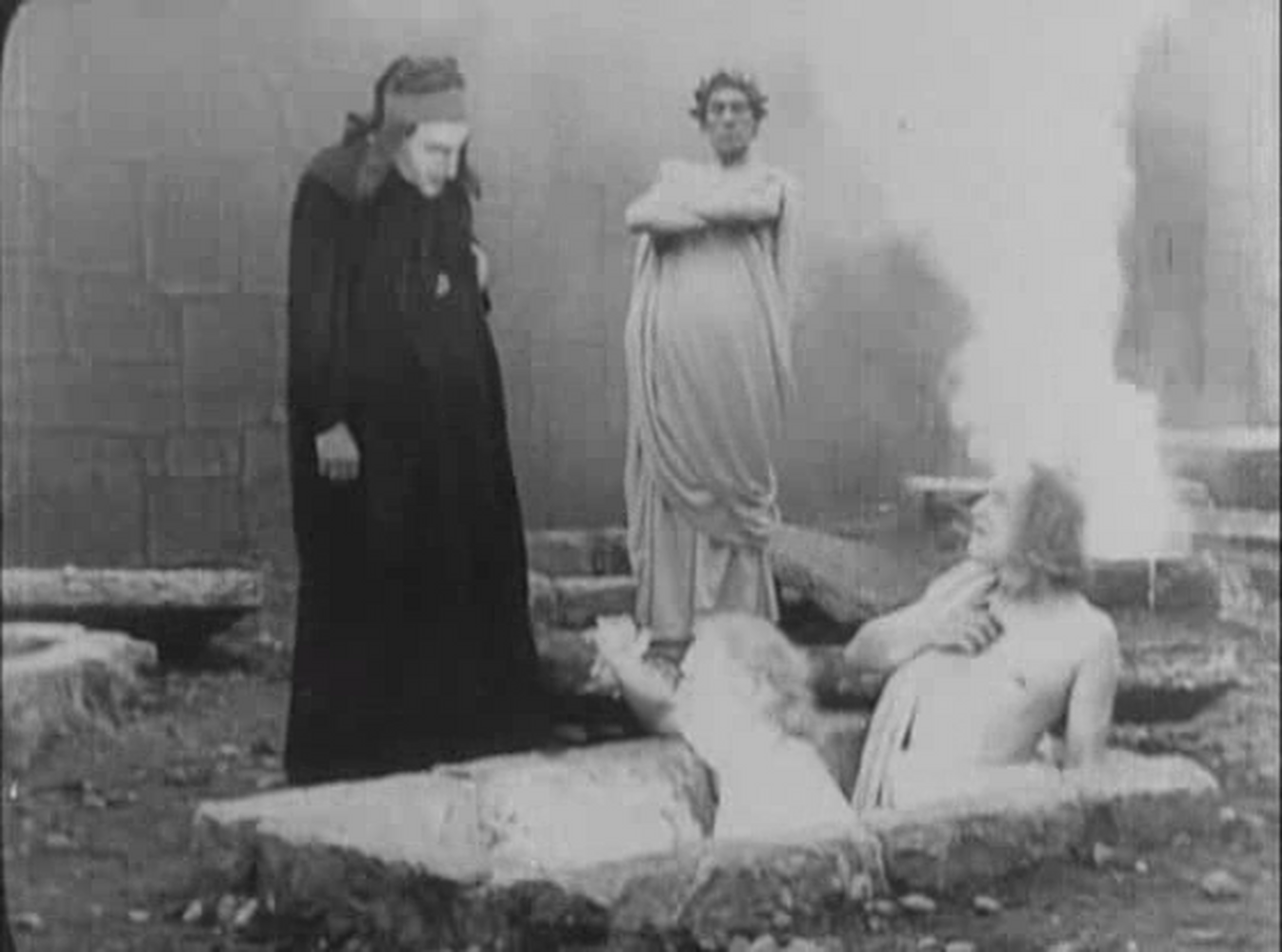 ☩ Illustrations : photographies et captures vidéo en ligne de L’Enfer, 1911. On trouve le film (sous-titré ang.) sur les serveurs des Archives d’Internet (San Francisco, États-Unis d’Amérique). ![]()