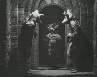 ☩ Illustrations : photographies et captures vidéo en ligne du Golem, 1920. On trouve le film (sous-titré ang., on trouve aussi celle en all.) sur les serveurs des Archives d’Internet. ![]()