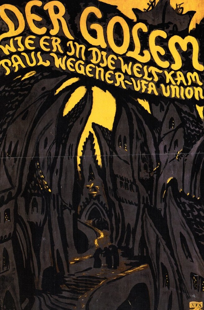 ► L’influence kabbalistique et généralement occultiste se ressent moins dans le film expressionniste de Wegener et Boese qui reste malgré tout l’une des premières et sans doute la meilleure version inspirée du mythe du golem. Ce sera d’ailleurs le premier film d’une trilogie de films muets et monochromes sur le thème du golem réalisée par Paul Wegener. Ce drame fantastique sera produit à Berlin et publié sur le territoire allemand.
