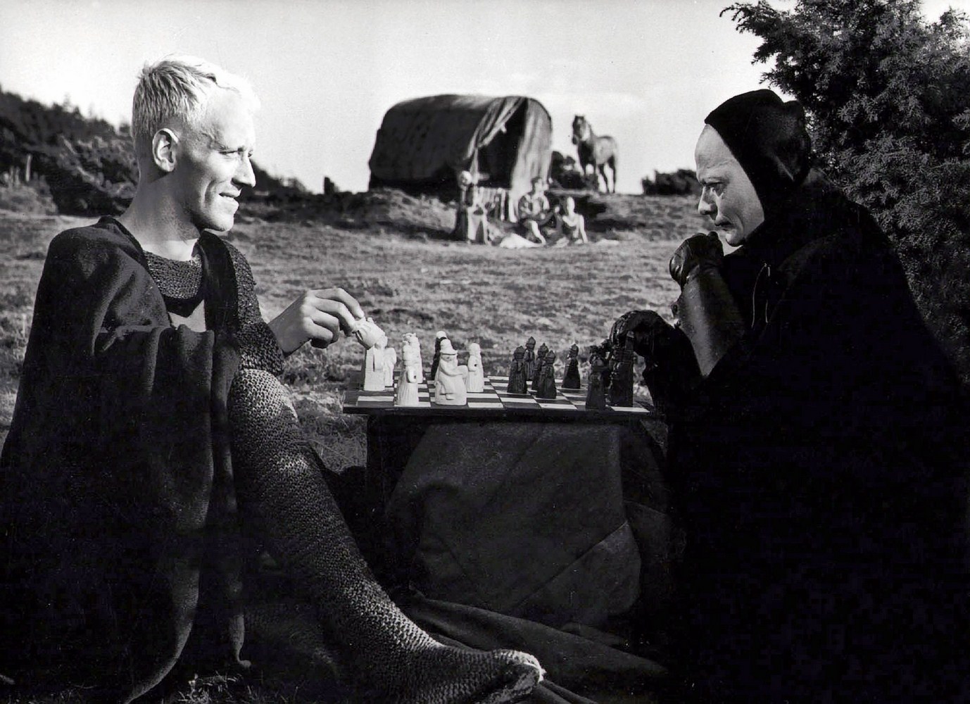 ► Ce film monochrome d’une heure trente, d’abord publié en Suède, raconte l’histoire d’un chevalier qui, de retour des croisades et sur fond d’un pays dévasté par la peste noire, croise la mort qui veut l’emporter. Le chevalier, plein de questions sur le sens de vie et sur Dieu, lui demande un délai et lui propose une partie d’échecs. Le film est adapté de la pièce de théâtre de Bergman : Trämålning.