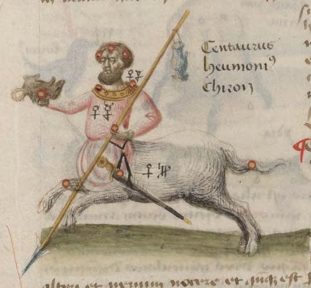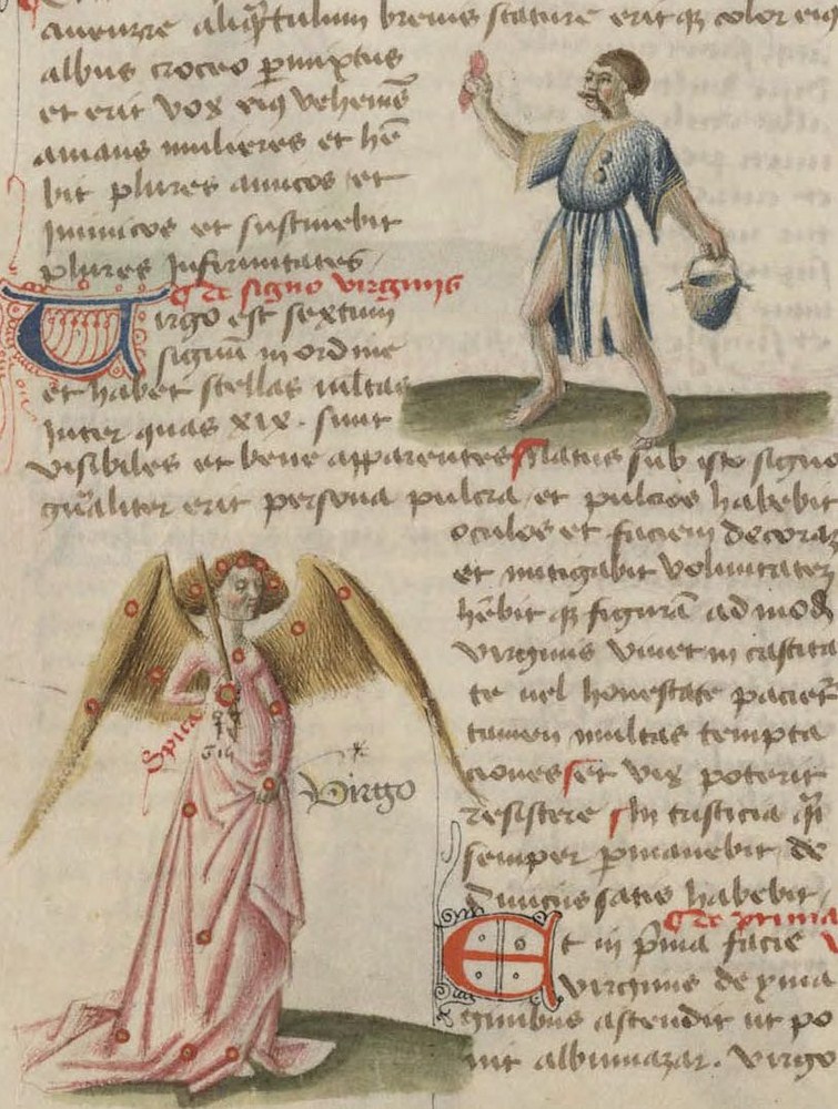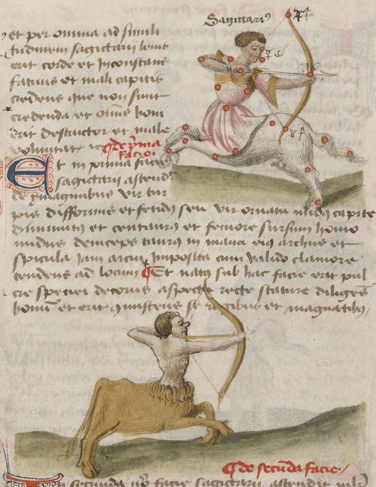 ■ Il manque la série du Lion et de la Vierge dans la présentation des décans de la version de la Bibliothèque cantonale de Saint-Gall. De plus les figures n’étant pas positionnées de la même manière que dans celle de la Bibliothèque nationale d’Espagne, nous n’avons pas pu les disposer dans une symétrie parfaite (sinon au prix d’un démembrement des pages, ce que nous avons voulu éviter).
