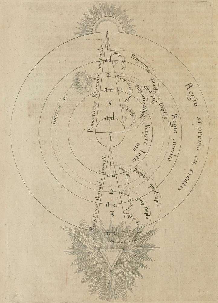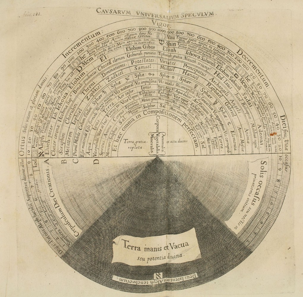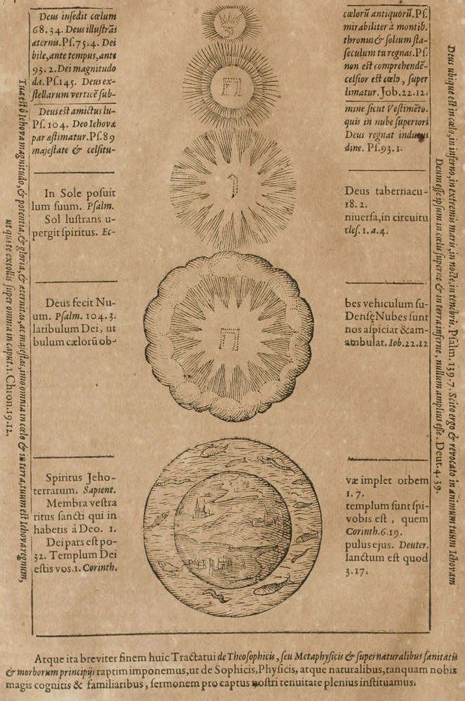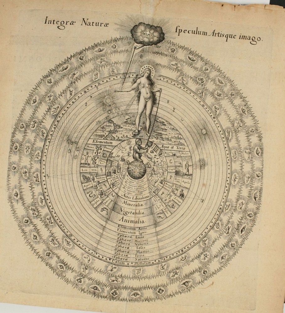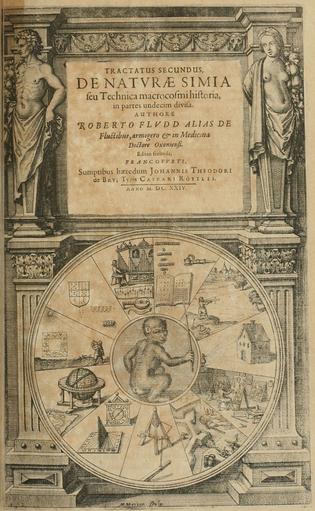 ■ L’ouvrage, édité par De Bry et richement illustré par son gendre, le célèbre graveur Merian, est bardé d’un nombre considérable de dessins à teneur illustratives, géométrique, mathématiques, musicales, technologiques ou encore astronomiques dont l’intérêt est cependant douteux sans avoir l’appui du texte à portée. Ainsi, pour le tome premier, nous avons reproduit une sévère sélection des gravures parmi celles qui nous ont semblé les plus belles, utiles ou bien curieuses à consulter. La numérisation de Getty est la meilleure devant celle de la Bnf, de la Fondation Jung et même des quelques gravures sorties par la Bibliothèque Beinecke.